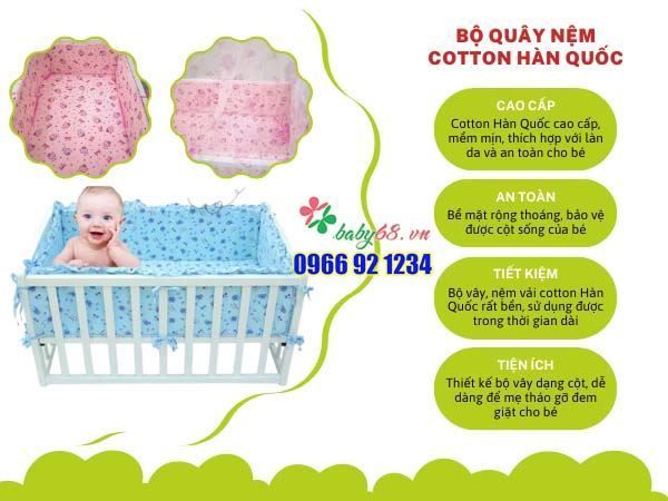 – Phụ kiện bao gồm: Bộ quây, nệm, màn.