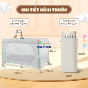 – Nôi có 2 chế độ: tầng dưới làm sân chơi, tầng trên làm nôi ngủ;