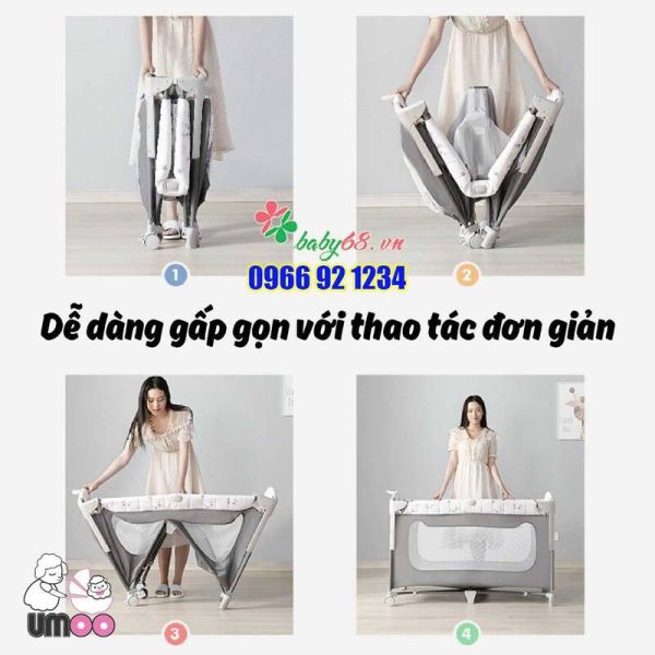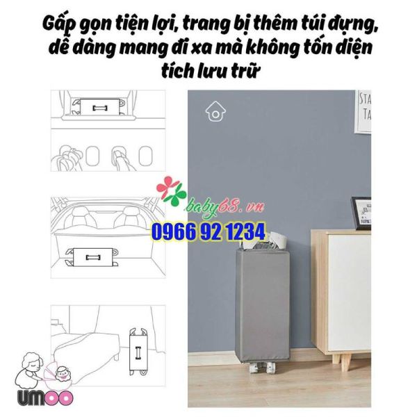 Nôi cũi vải đa năng Umoo gấp gọn, hạ thành UM-08167 (UM-08108)