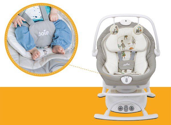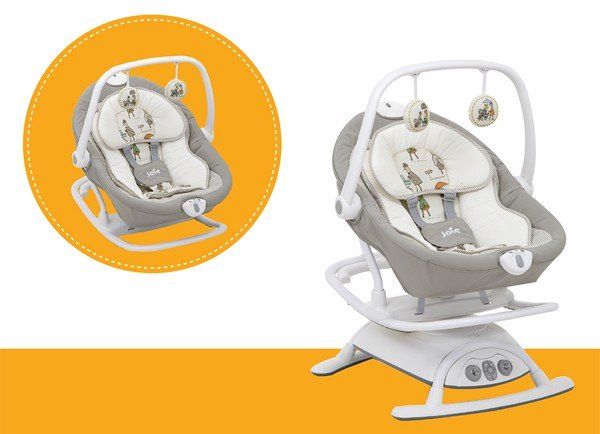 Tính năng được cải tiến của Nôi đưa Joie Sansa 2in1 là khả năng nâng ghế lên và tách ra khỏi khung để thành nôi đưa di động tiện dụng. Giúp mẹ có thể mang bé theo và dễ dàng quan sát bé.