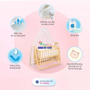 - Thiết kế thông minh cho phép chuyển đổi dễ dàng từ nôi sang cũi, đáp ứng nhu cầu phát triển của bé.