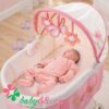 Mái vòm che chắn cho bé, có thể điều chỉnh nâng lên hạ xuống, được trang trí bằng các món đồ chơi mềm đi kèm để treo trên nôi, kích thích bé phát triển các giác quan và học cách với đồ vật.