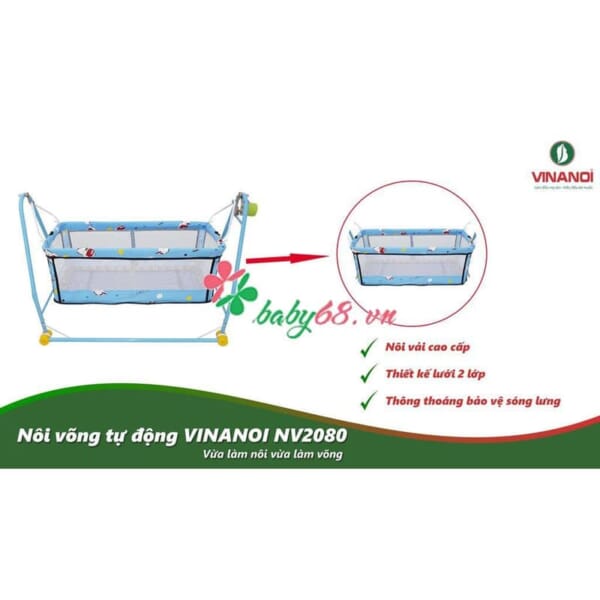 Nôi võng tự động VINANOI NV2080 sẽ là một sản phẩm không thể thiếu cho mẹ và bé, vừa giúp bé ngủ ngon vừa giúp mẹ an tâm và có thêm thời gian làm việc, chăm sóc bản thân.