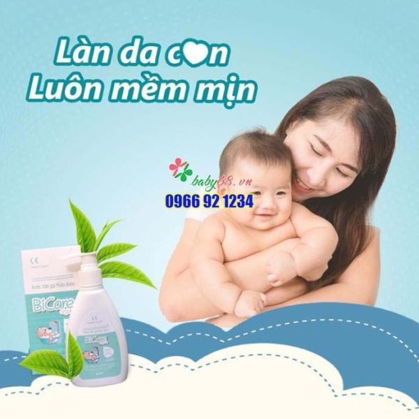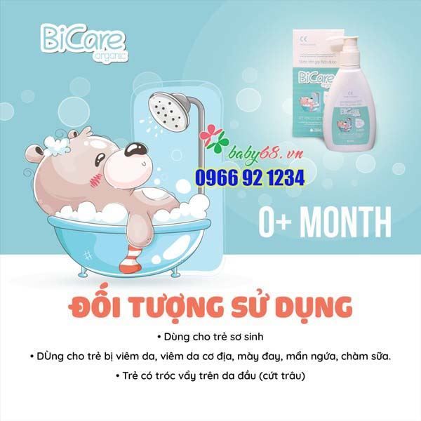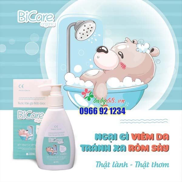 Nước tắm gội thảo dược Bicare Organic cho trẻ sơ sinh giúp ngăn ngừa viêm da, rôm sảy