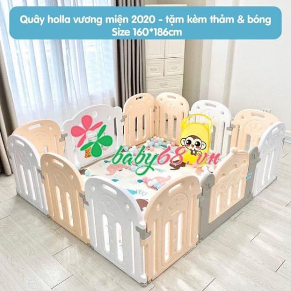 Quây cũi Holla vương miện cao cấp phiên bản 2020, kèm thảm, giỏ đụng đồ và 100 bóng cho bé chơi, vượt qua kiểm định nghiêm ngặt tiêu chuẩn Châu Âu, an toàn cho bé