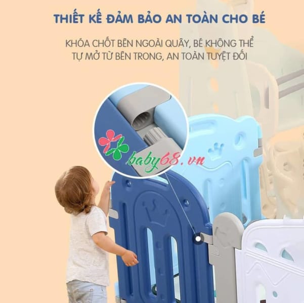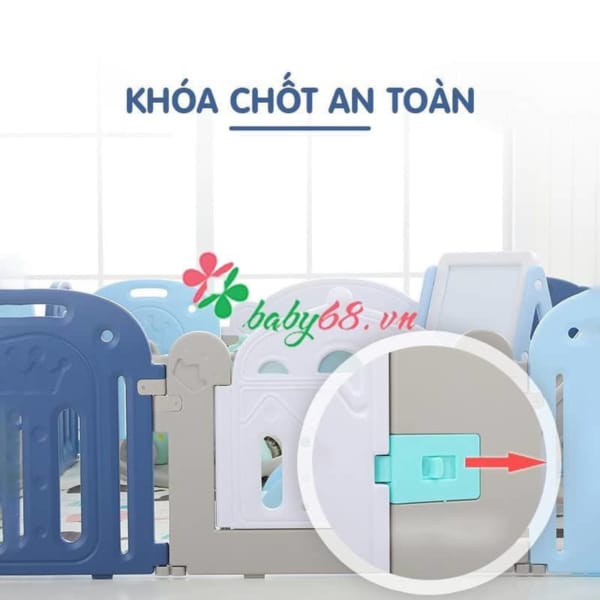 – Khóa snap ngoài quây, cố định quây, tránh trường hợp bé mở khóa dễ dàng khi đứng trong quây