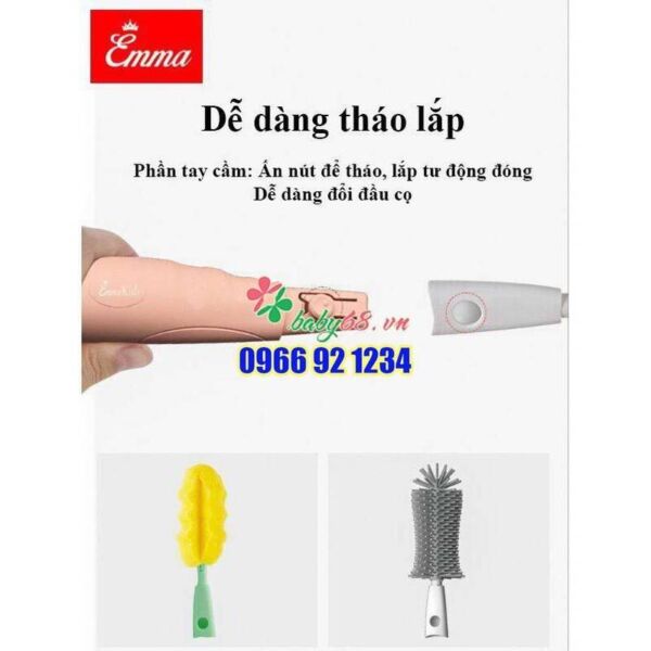 Set cọ rửa bình sữa EMMA KIDS – Bộ cọ bình silicon cao cấp 4 chi tiết