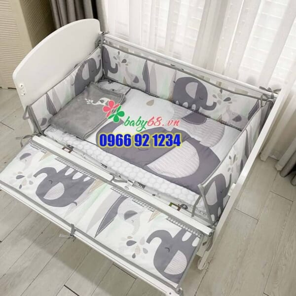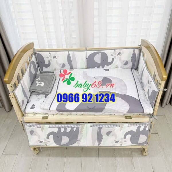 Bộ quây vải cao cấp 7 món bao gồm: 4 đệm thành, 1 chăn mỏng, 1 chăn dày, 1 ga giường