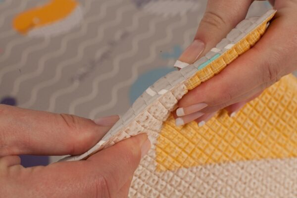 1)Thảm có độ dày 8.5-10 mm, độ dày này rất lý tưởng cho bé bò, bé chơi và bé phát triển.