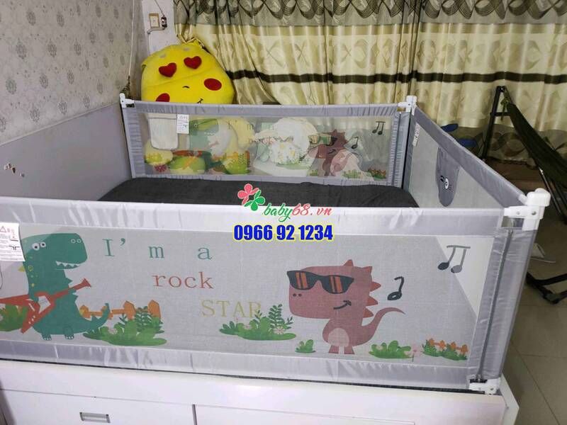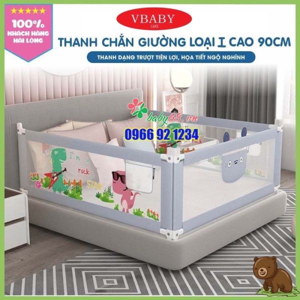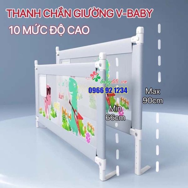 Thanh chắn giường V-BABY khủng long mẫu Mới 2022 – Chặn giường cho bé dạng trượt cao tối đa 90cm