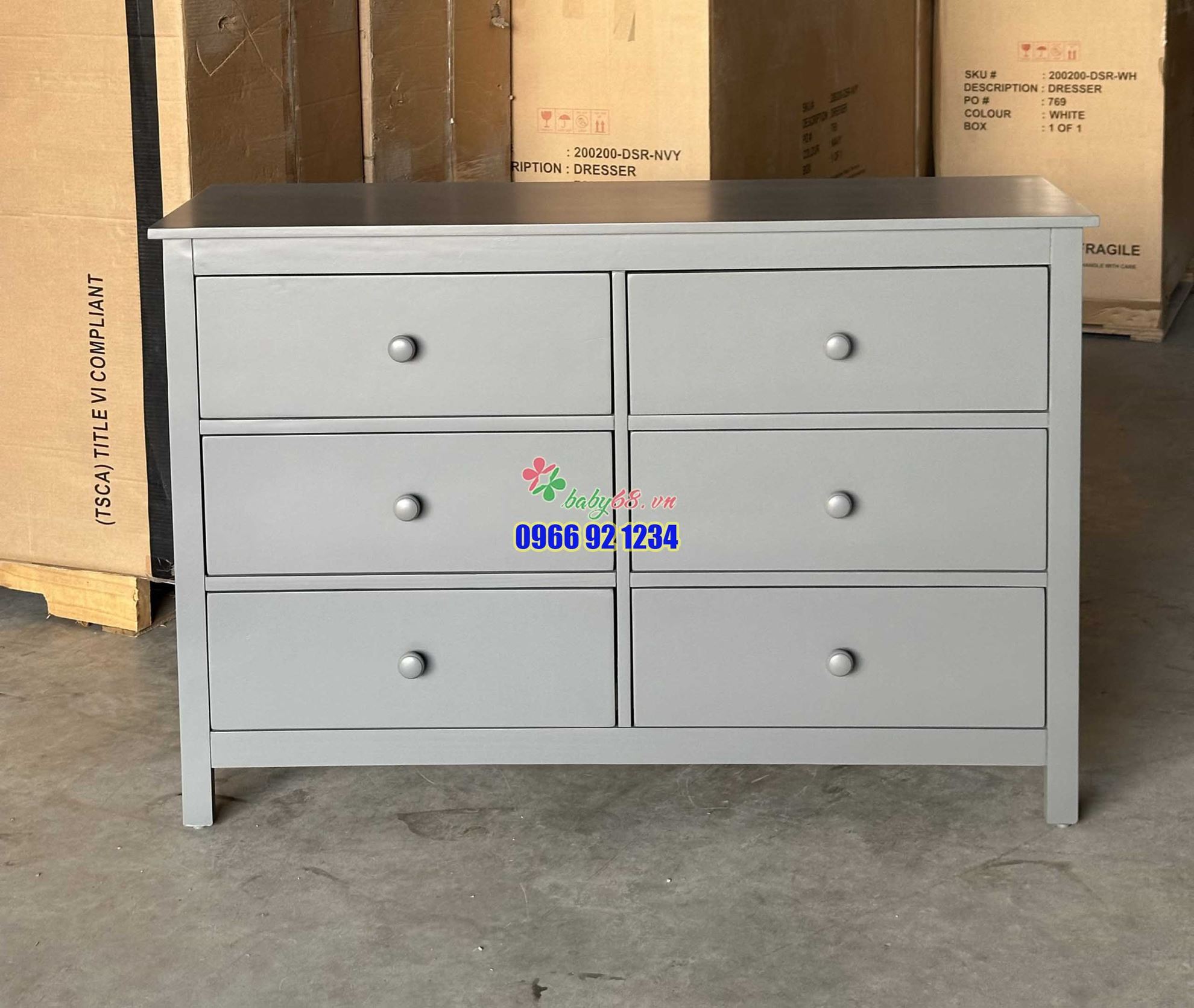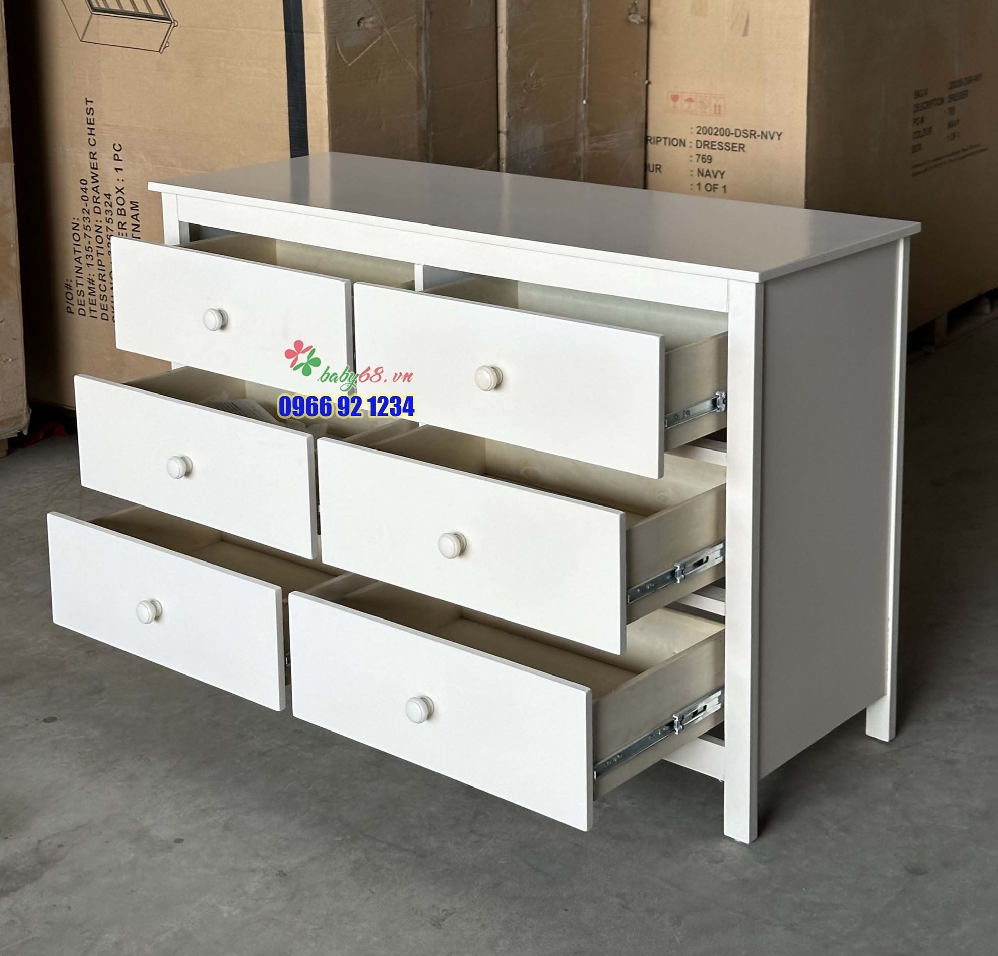 Tủ gỗ 6 ngăn kéo đựng đồ, để quần áo, mỹ phẩm, hộc kéo hiện đại, trẻ trung – Kích thước D122xR43,5xC81