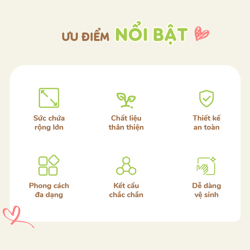 - Tiện ích: Đựng quần áo, thiết bị, đồ ăn khô, làm chỗ decor