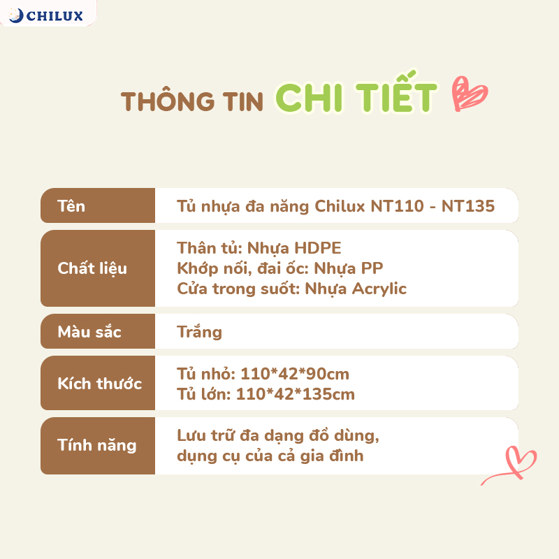 Tủ nhựa đa năng Chilux NT110-NT135 – Đựng quần áo, đồ chơi, thiết bị cho bé, chất liệu an toàn