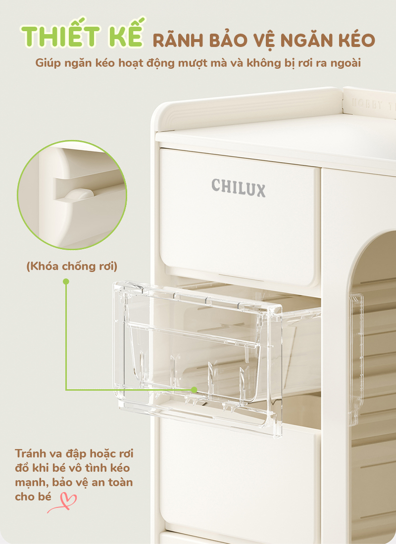 - Thiết kế rãnh bảo vệ ngăn kéo giúp tránh va đập, rơi đồ khi kéo mạnh