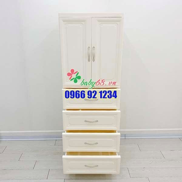 – Nhiều ngăn tủ chia nhỏ cho không gian đựng đồ tiện dụng hơn, 1 ngăn tủ to treo quần áo cho bé