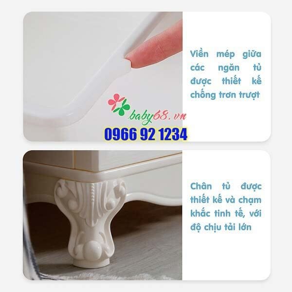 – Cơ chế chống trượt hộc tủ, tạo sự an toàn cho bé khi tò mò chơi hay sử dụng