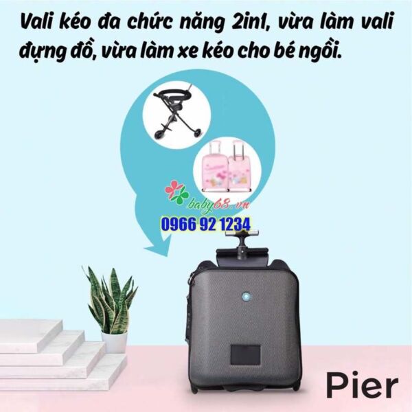 Vali xe đẩy 2 in1 Pier Pi-0229, vali xe đẩy cho bé thuận tiện mang theo khi đi du lịch mẫu mới xu hướng 2023