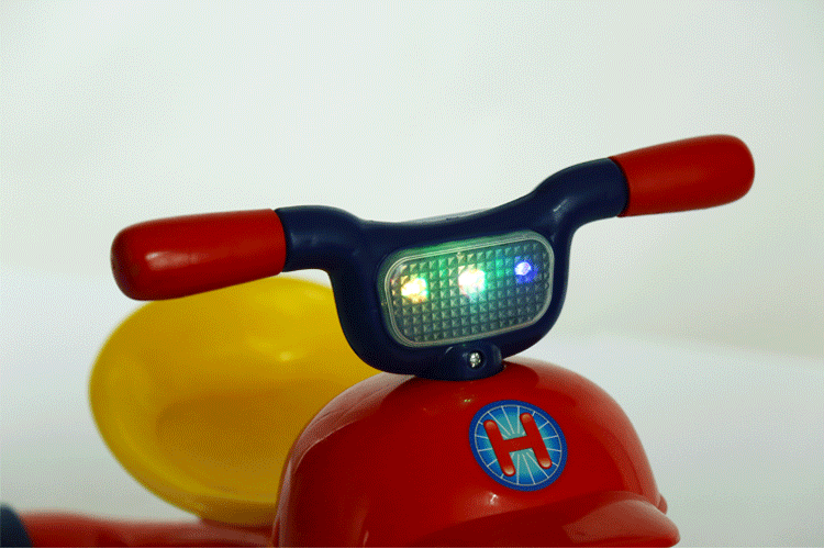 – Xe còn lắp đặt hệ thống đèn ở đầu xe và hai bánh xe sau, tạo cho bé sự thích thú và nổi bật, nhất là những nơi hơi tối.