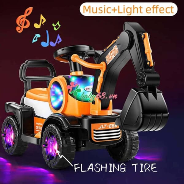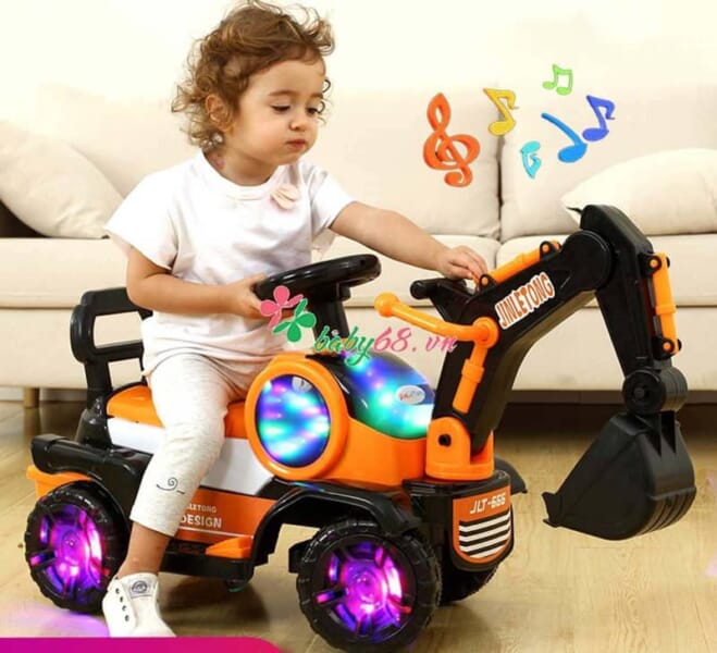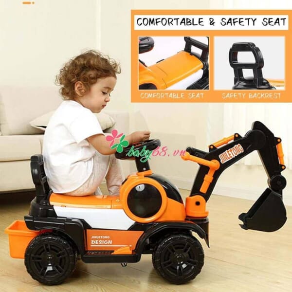 Xe cần cẩu máy xúc điện cho bé JLT166 thiết kế gọn nhẹ, chân ga bé tự điều khiển, xe có nhạc vui nhộn ghế có tựa lưng tạo cảm giác cho bé thoải mái khi chơi