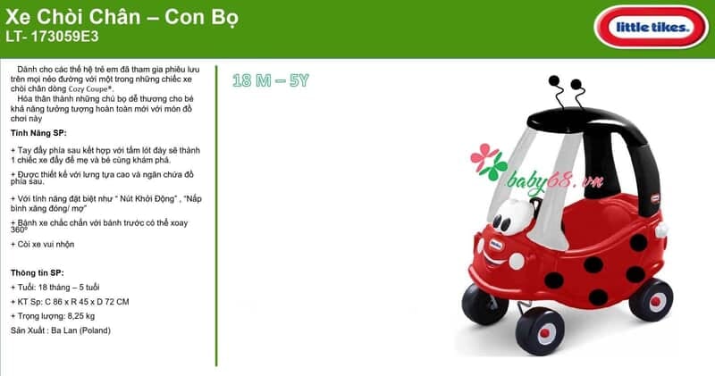 - Những chiếc xe chòi chân của Little Tikes luôn hướng tới tính chất vận động thể chất và sáng tạo là chính, với trò chơi này sẽ rèn luyện cho đôi chân của bé thêm dẻo dai