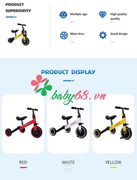 Xe chòi chân đa năng 2020 3 trong 1. Vừa có thể làm xe chòi chân cho bé đẩy, Vừa có thể làm xe ba bánh cho bé đạp, vừa có thể làm xe trượt cho bé chơi.