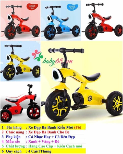 ★ Xe đạp 3 bánh F6 phong cách mới cho bé từ 1 – 6 tuổi có thể sử dụng, dễ gấp, dễ mang, cho bé trải nghiệm các hoạt động đạp xe thú vị.