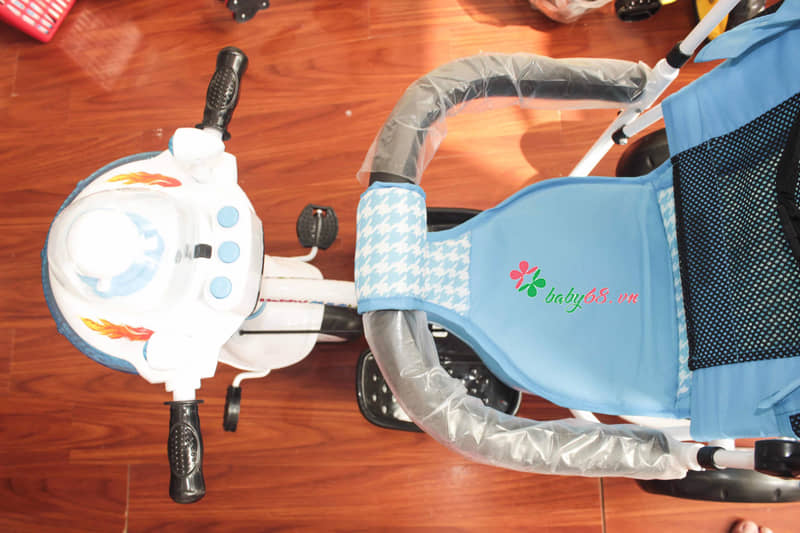 Xe có cần đẩy phía sau cho bố mẹ, có thể tháo rời dễ dàng, hỗ trợ điều khiển chiếc xe khi bé mới bắt đầu tập đi.