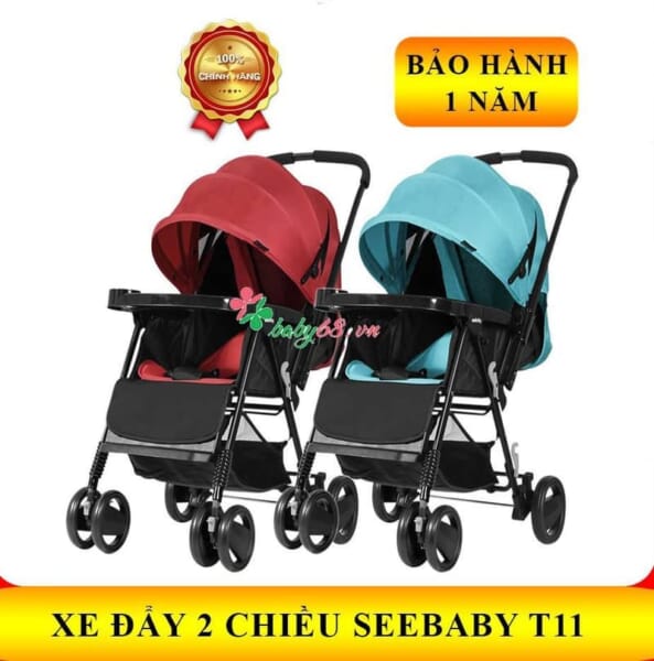 Xe đẩy 2 chiều, 3 tư thế cao cấp Seebaby T11 (tặng kèm màn chống muỗi) cho bé
