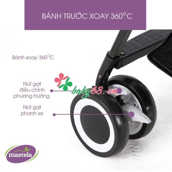 – Bánh xe kép lớn, có thể xoay 360 độ linh hoạt để mẹ điều khiển xe dễ dàng