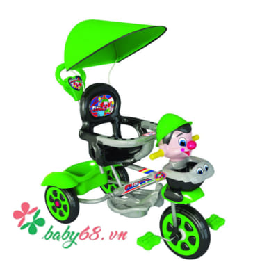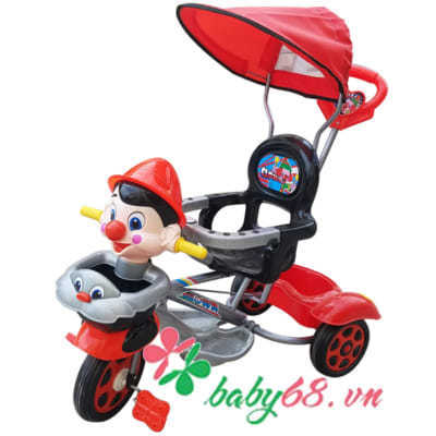 Xe đẩy 3 bánh bảo hiểm có nhạc, có mái che chú hề Nhựa chợ lớn
