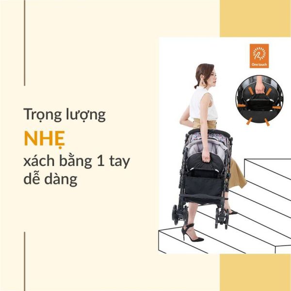 4. Xách xe bằng 1 tay dễ dàng nhờ thiết kế quai xách tiện lợi giúp mẹ 1 tay bế bé, 1 tay giữ xe được chắc chắn, dễ dàng hơn, nhất là khi di chuyển.