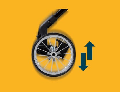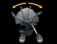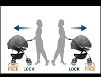 2. Bánh xe tự động đóng/ mở chế độ quay 360̊ khi đảo chiều tay đẩy: Chức năng độc đáo này giúp việc đẩy xe thật trơn tru, Mẹ dễ dàng điều chỉnh góc quay của xe với cả hai chiều tay đẩy. Những khúc ngoặt với góc hẹp không làm khó được Mẹ nữa.
