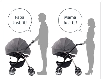 1. Tay cầm điều chỉnh độ cao với 7 mức khác nhau phù hợp với tầm cao của ba/ mẹ.