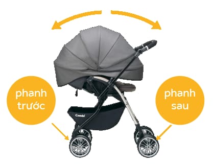 – Khi mẹ đẩy từ phía trước, muốn dừng xe chỉ cần khóa phanh trước.