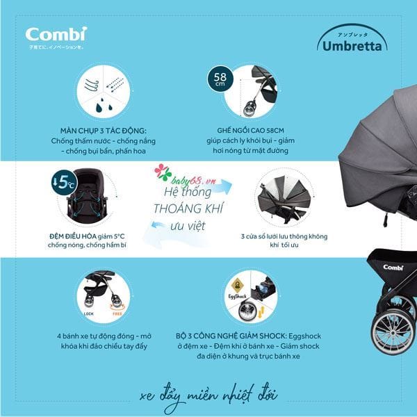 Umbretta – Xe đẩy miền nhiệt đới – hội tụ đỉnh cao công nghệ Combi – Bảo vệ bé toàn diện 360 độ – 365 ngày!