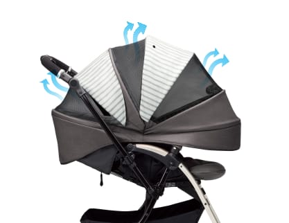 4. Hệ thống 3 cửa sổ lưới giúp lưu thông không khí tối ưu. Nhờ hệ thống cửa sổ lưới này, Mẹ có thể kéo màn chụp để phủ kín xe, giúp chống nắng nhưng vẫn đảm bảo sự thông thoáng cho bé.