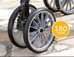 – Hệ thống các giảm shock đa diện ở khung – trục bánh xe nhờ các khớp nối linh hoạt giảm thiểu lực xóc truyền từ bánh xe lên ghế ngồi của bé.