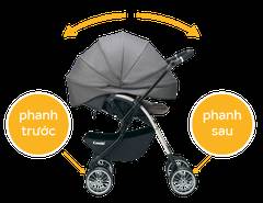 – Khi mẹ đẩy từ phía trước, muốn dừng xe chỉ cần khóa phanh trước.