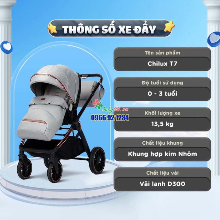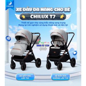Xe đẩy đa năng cho bé Chilux T07 – Xe đẩy 2 chiều 3 tư thế khung trợ lực, bánh xe giảm xóc T7