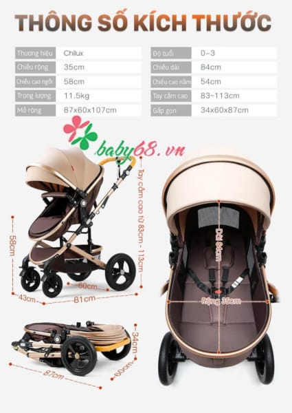 Xe đẩy đa năng cho bé Chilux V1.6 – Nhiều chế độ tiện dụng, sang trọng