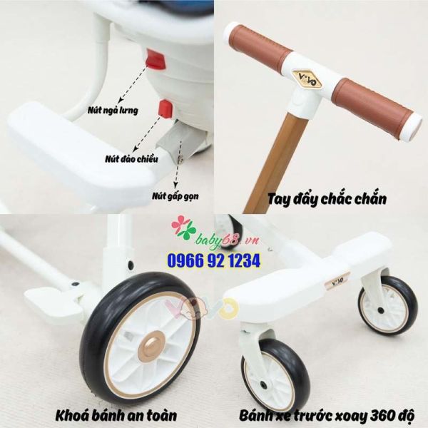 + Kết cấu gấp gọn của VoVo đặc biệt thuận tiện khi muốn mang theo trong các chuyến du lịch, bố mẹ có thể cất gọn gàng trong cốp ô tô, mang lên xe khách hoặc ngay cả khi đi máy bay. Việc di chuyển qua các con đường gồ ghề, qua các bậc cầu thang cũng không còn khó khăn nữa khi bố mẹ có thể 1 tay bế bé và 1 tay xách hoặc đeo xe đẩy bên vai kia dễ dàng.