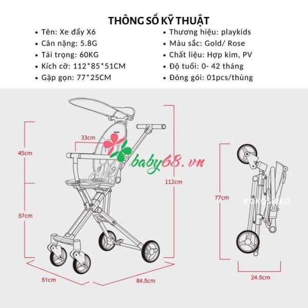 | Tên sản phẩm | Xe đẩy du lịch gấp gọn cao cấp Vovo playkids X6 |