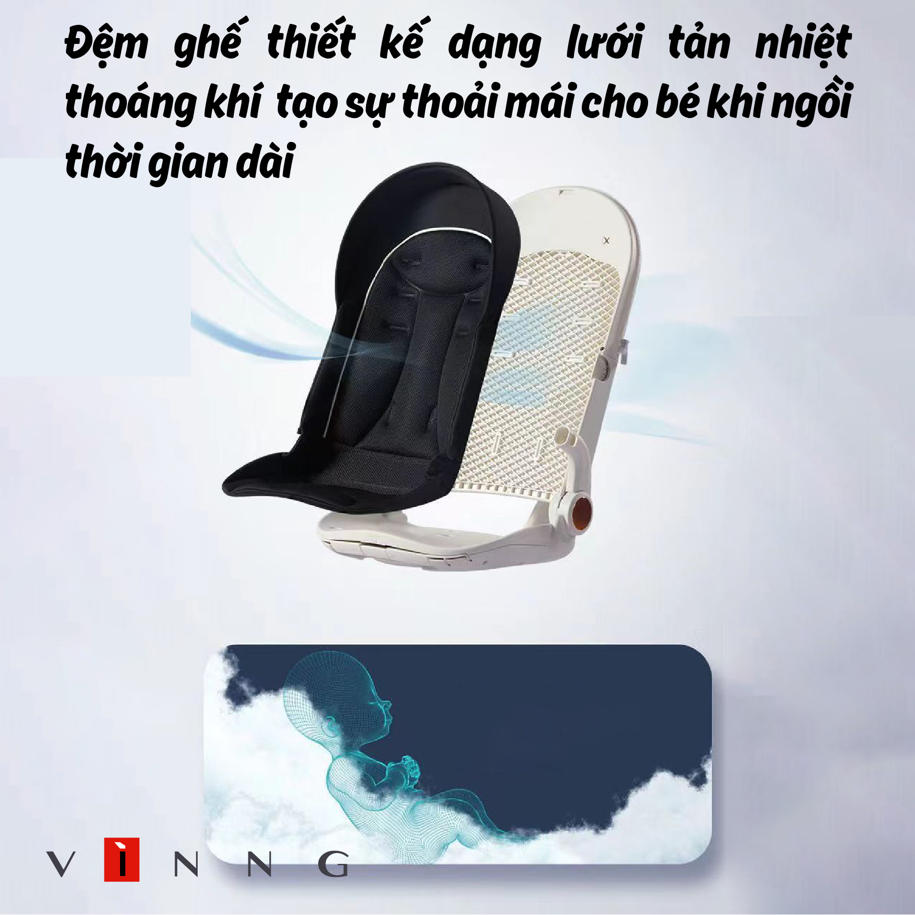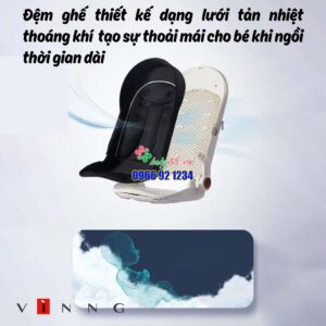 – Đệm ghế dạng lưới tản nhiệt thoáng khí tạo sự thoải mái cho bé