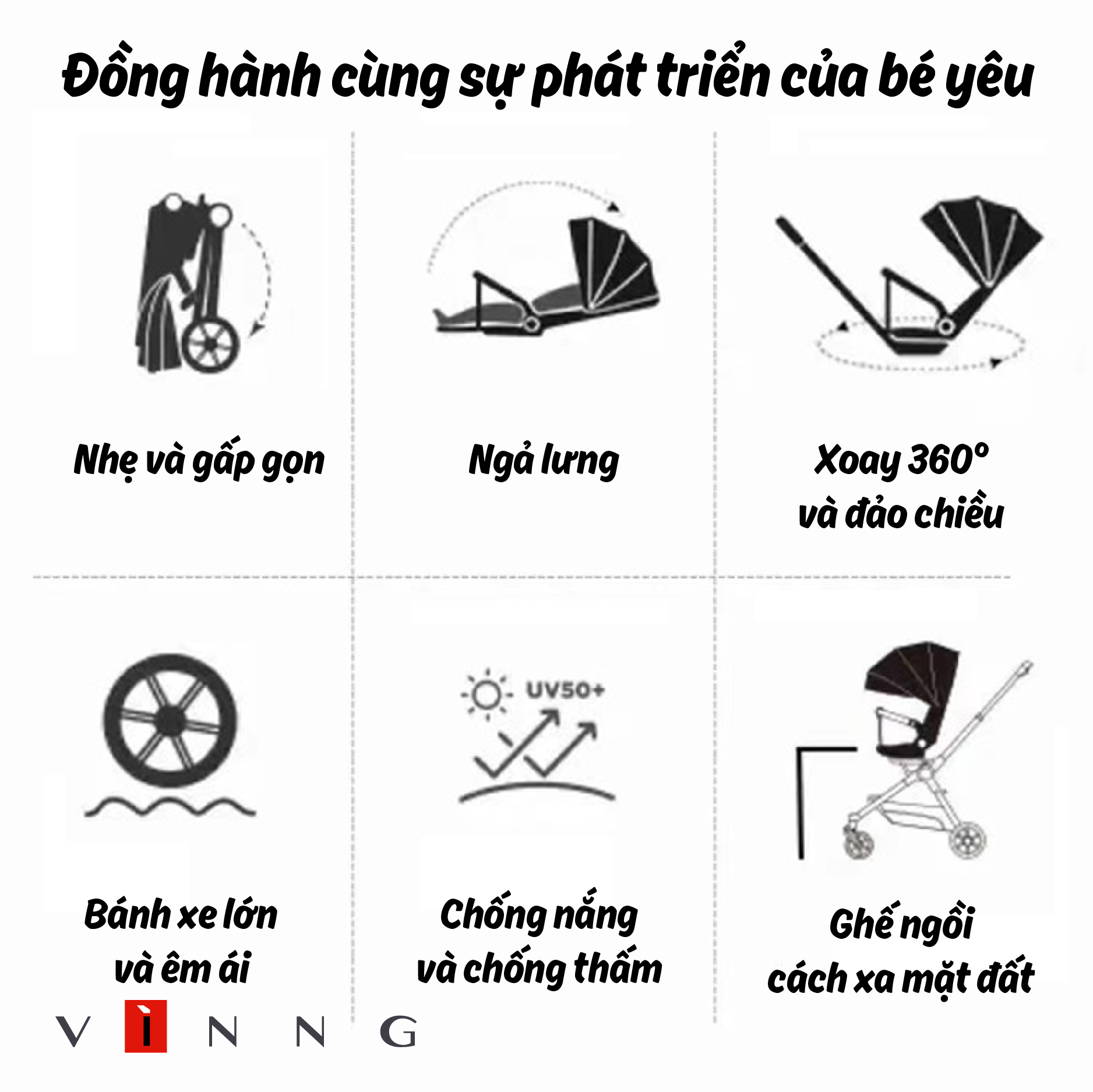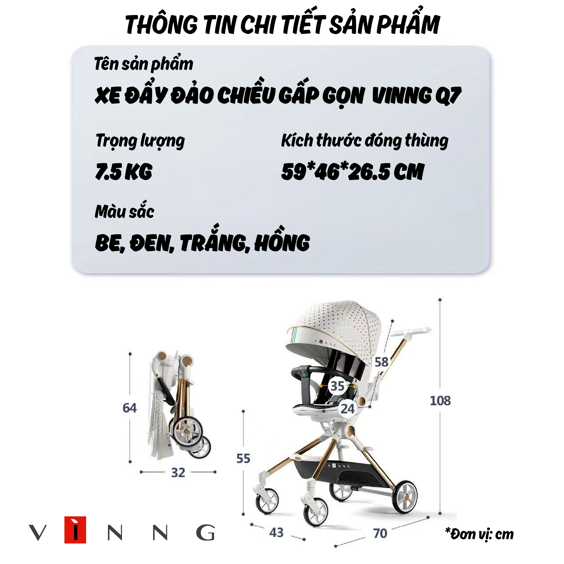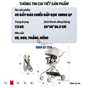 Xe đẩy du lịch gấp gọn đảo chiều Vinng Q7 (nằm, ngả, ngồi)