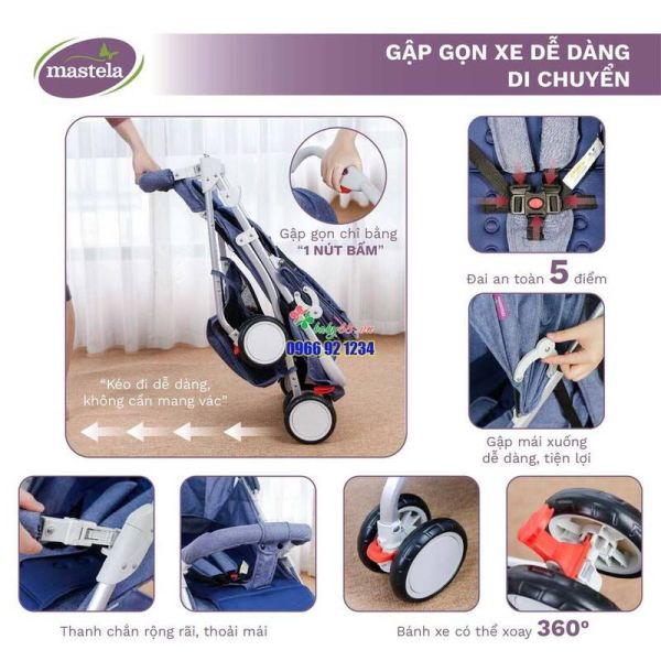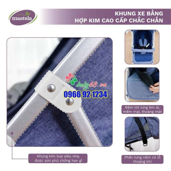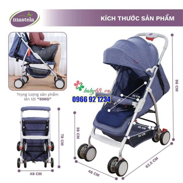 – Xe đẩy Mastela A2 có trọng lượng siêu nhẹ rất thích hợp khi mẹ mang theo cho bé đi chơi, đi du lịch