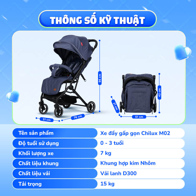 Xe đẩy gấp gọn Chilux M02 – Thiết kế khoa học, Tính năng vượt trội