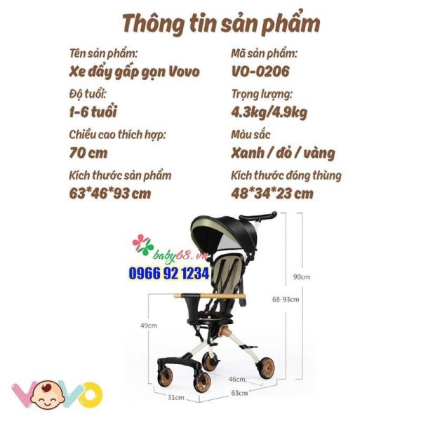 Xe đẩy gấp gọn đảo chiều Vovo VO-0206
