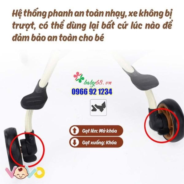 – Trang bị phanh xe giúp xe không bị trượt đảm bảo an toàn cho bé