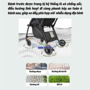 – Có giỏ chứa đồ lớn phía dưới, tiện cho việc chứa đồ dùng cho bé khi đi ra ngoài.