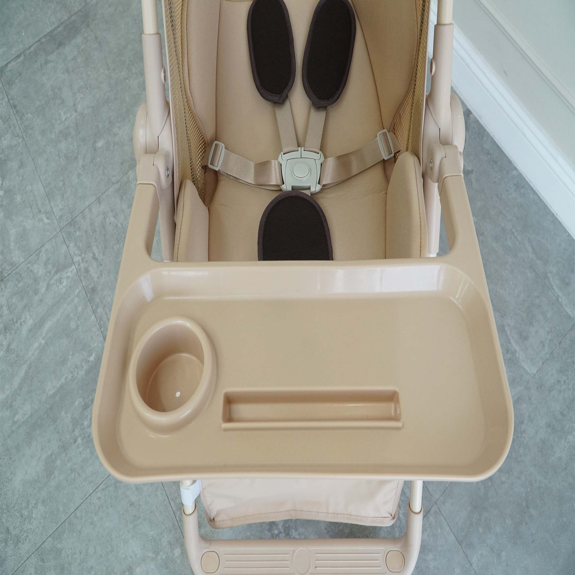 Đệm lót và khay bàn ăn có thể tháo rời và vệ sinh dễ dàng.